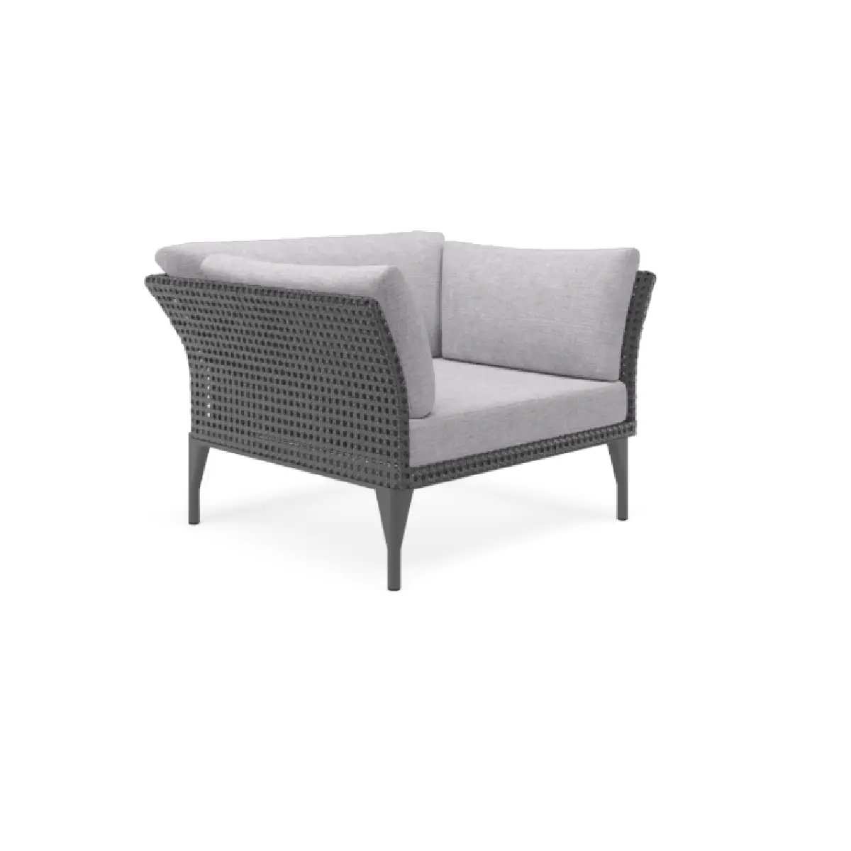 Designed for luxurious lounging, this Athens range living set combines comfort and craftsmanship. The single seater sofa features powder-coated aluminium frame, hand-woven with premium synthetic wicker—built to withstand outdoor elements with style.