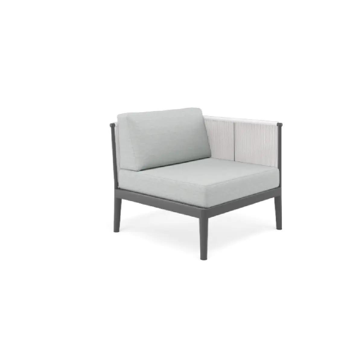 Our modular outdoor sofas are designed for ultimate versatility. This Bastian corner left module can be seamlessly combined with center or arm modules to build a layout that suits your space—