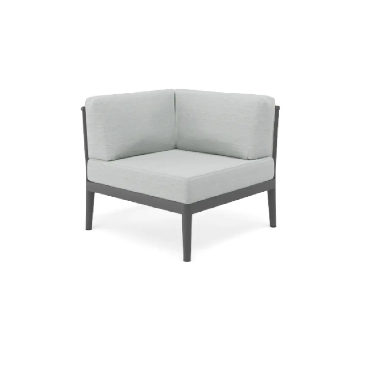 Our modular outdoor sofas are designed for ultimate versatility. This Bastian corner module can be seamlessly combined with center or arm modules to build a layout that suits your space—
