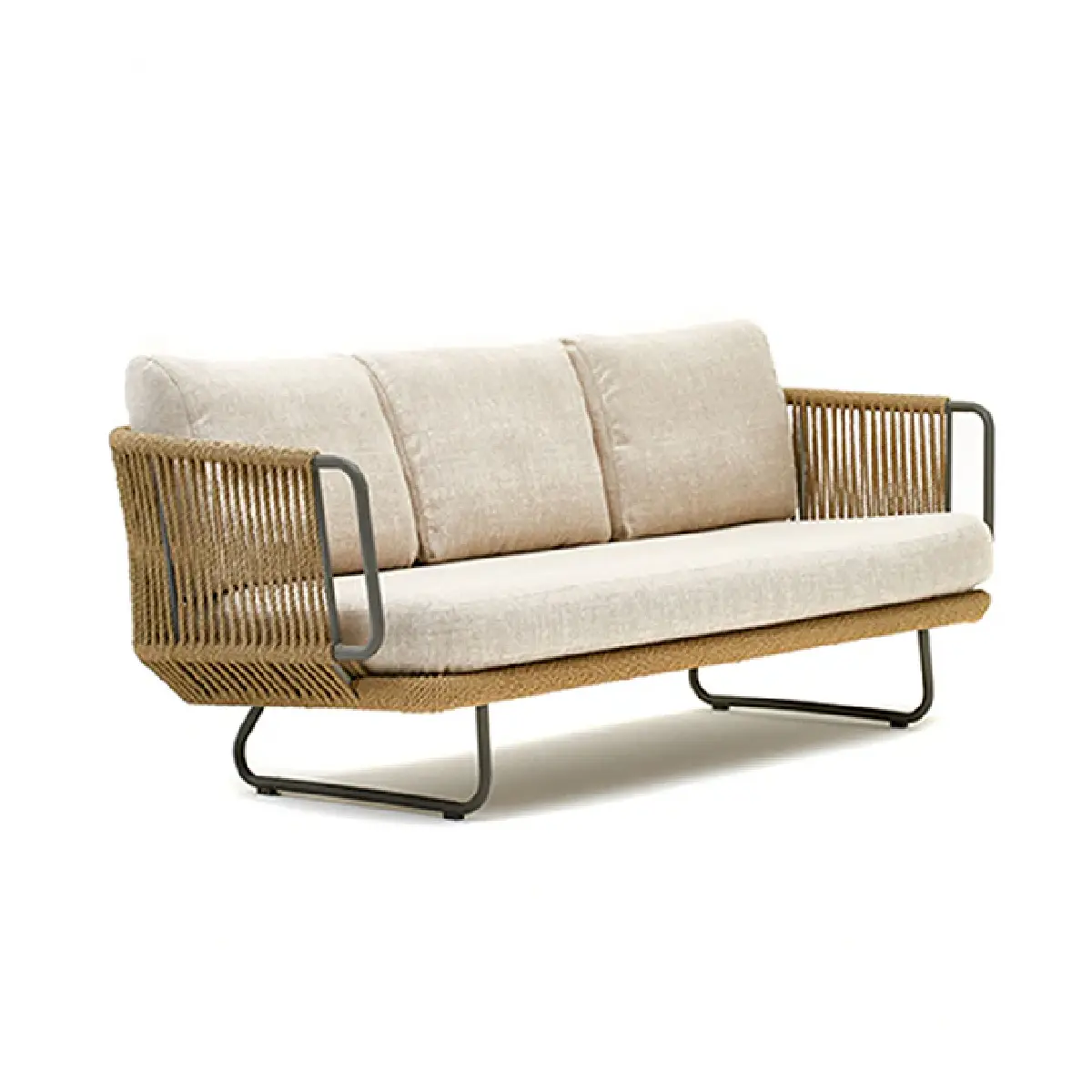 Designed for luxurious lounging, this Berkley range living set combines comfort and craftsmanship. The three seater sofa features powder-coated aluminium frame, hand-woven with premium oelfin rope—built to withstand outdoor elements with style.
