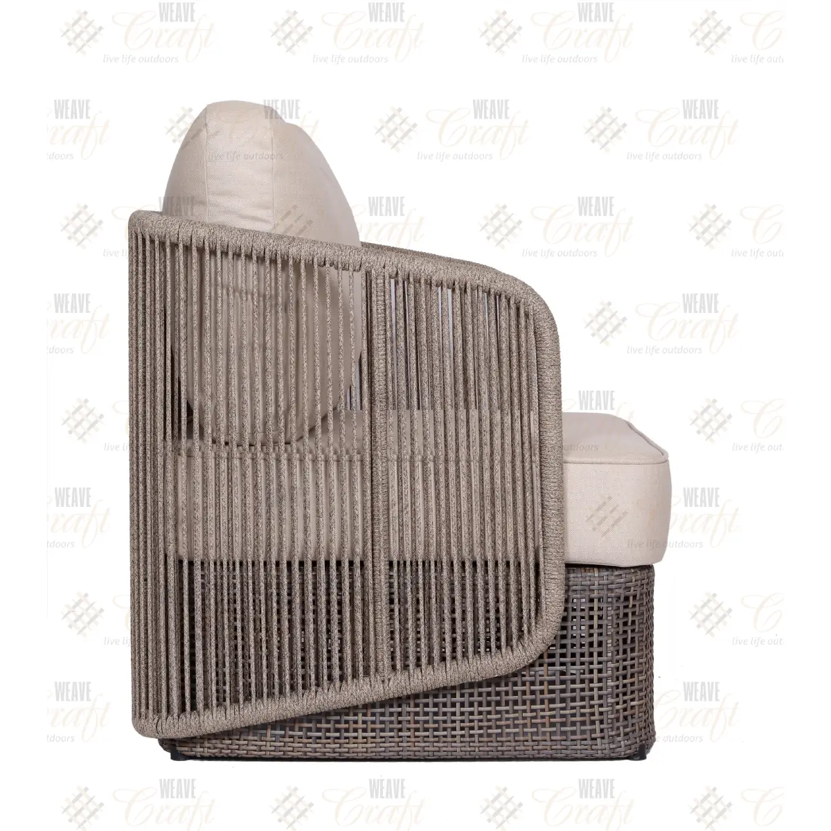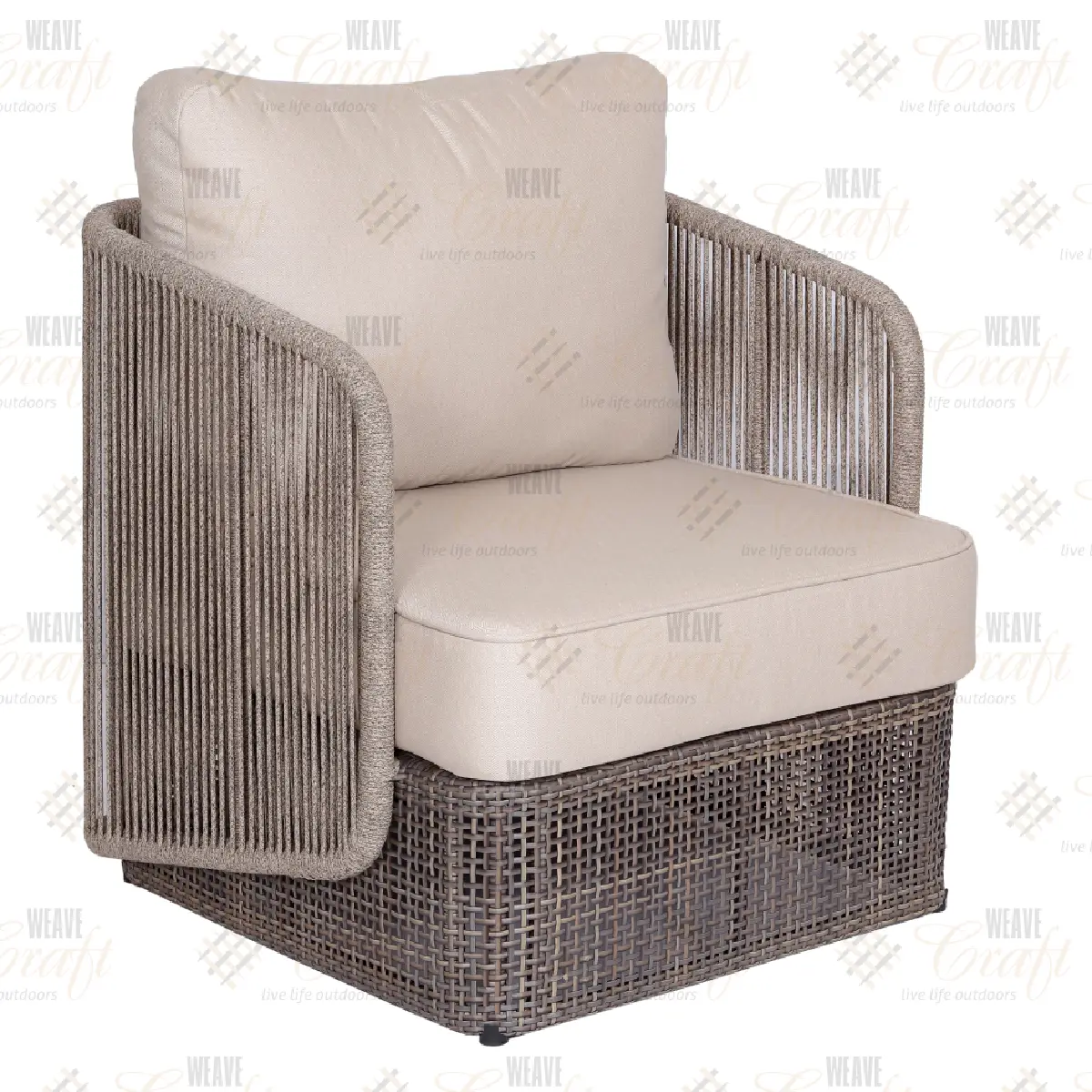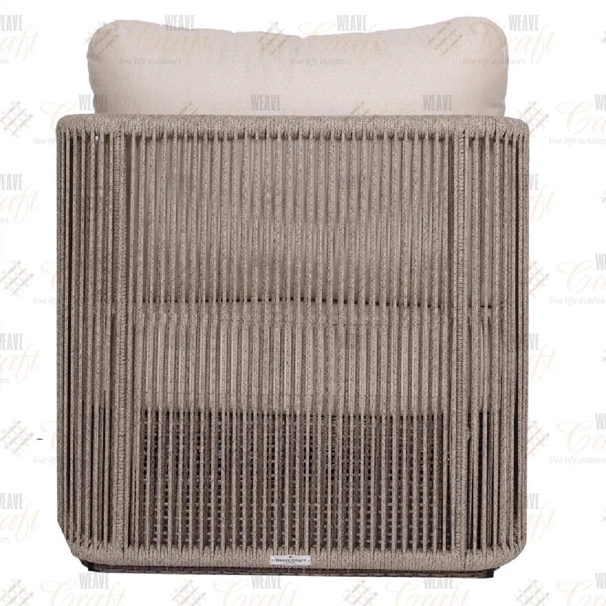 Designed for luxurious lounging, this Cooper range living set combines comfort and craftsmanship. The single seater sofa features powder-coated aluminium frame, hand-woven with premium synthetic wicker and olefin rope—built to withstand outdoor elements with style.