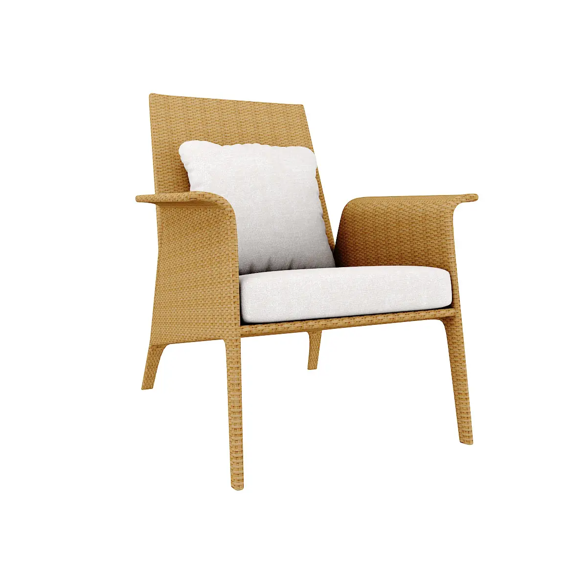 Its deep seat cushion is filled with 32-density filler-free PU foam and upholstered in 100% solution-dyed acrylic fabric from Agora (Spain) and Sunbrella (France). Removable, washable covers make upkeep effortless. Higher-density foam available on request.