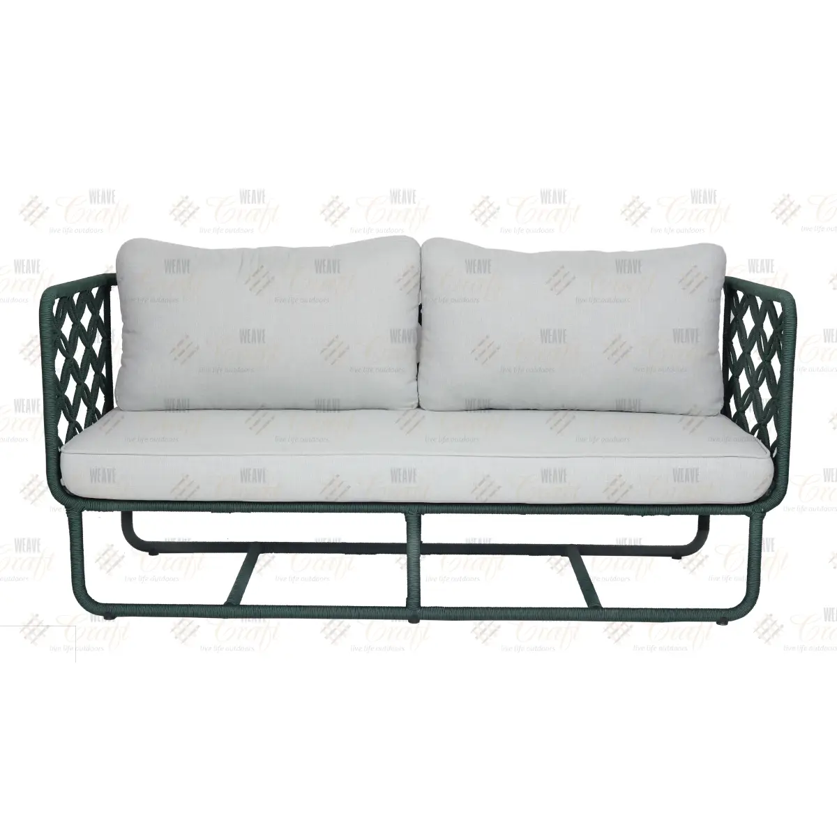 Designed for luxurious lounging, this Dahlia range living set combines comfort and craftsmanship. The two seater sofa features powder-coated aluminium frame, hand-woven with premium olefin rope—built to withstand outdoor elements with style.
