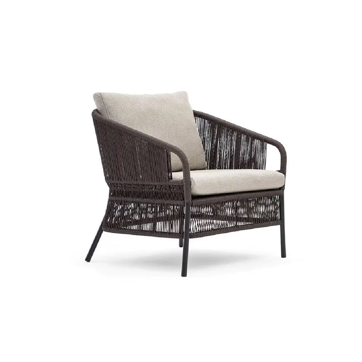 Designed for luxurious lounging, this Hanoi range living set combines comfort and craftsmanship. The single seater sofa features powder-coated aluminium frame, hand-woven with premium olefin rope—built to withstand outdoor elements with style.