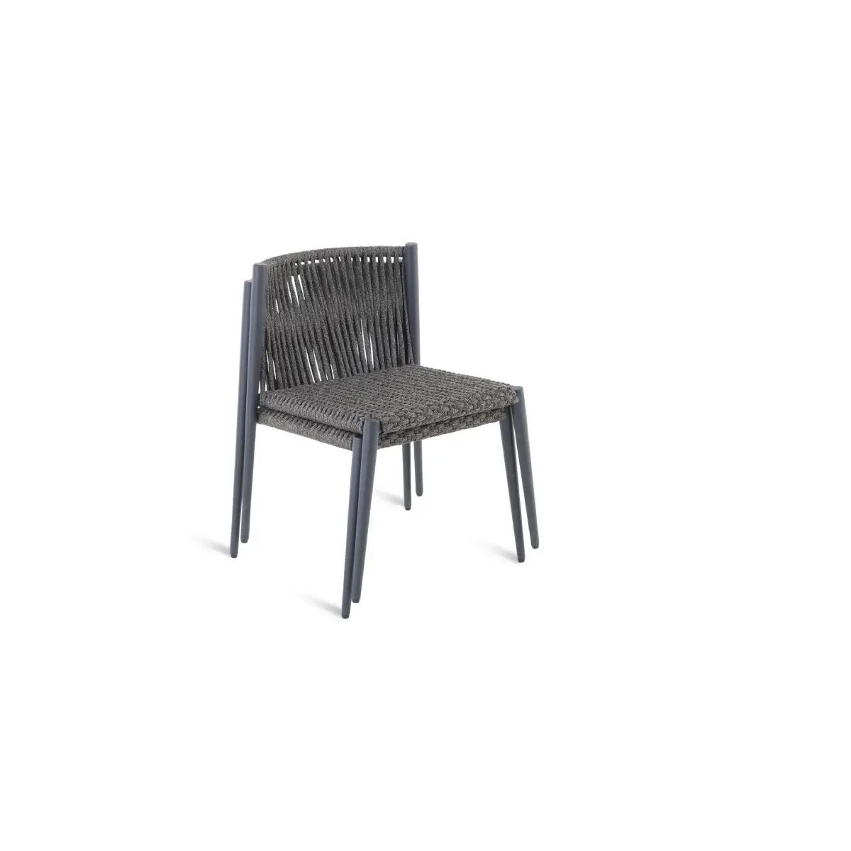 This elegant dining room chair is Without Arms crafted with a powder-coated aluminium frame and hand-woven olefin rope. The plush cushion features 32-density filler-free PU foam, upholstered in premium 100% solution-dyed acrylic fabric from Agora (Spain) and Sunbrella (France). Removable, hand-washable covers ensure easy maintenance. Higher-density foam available on request.