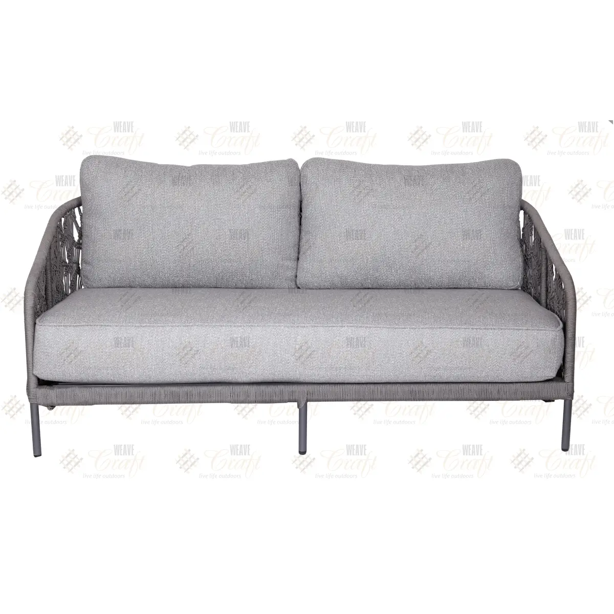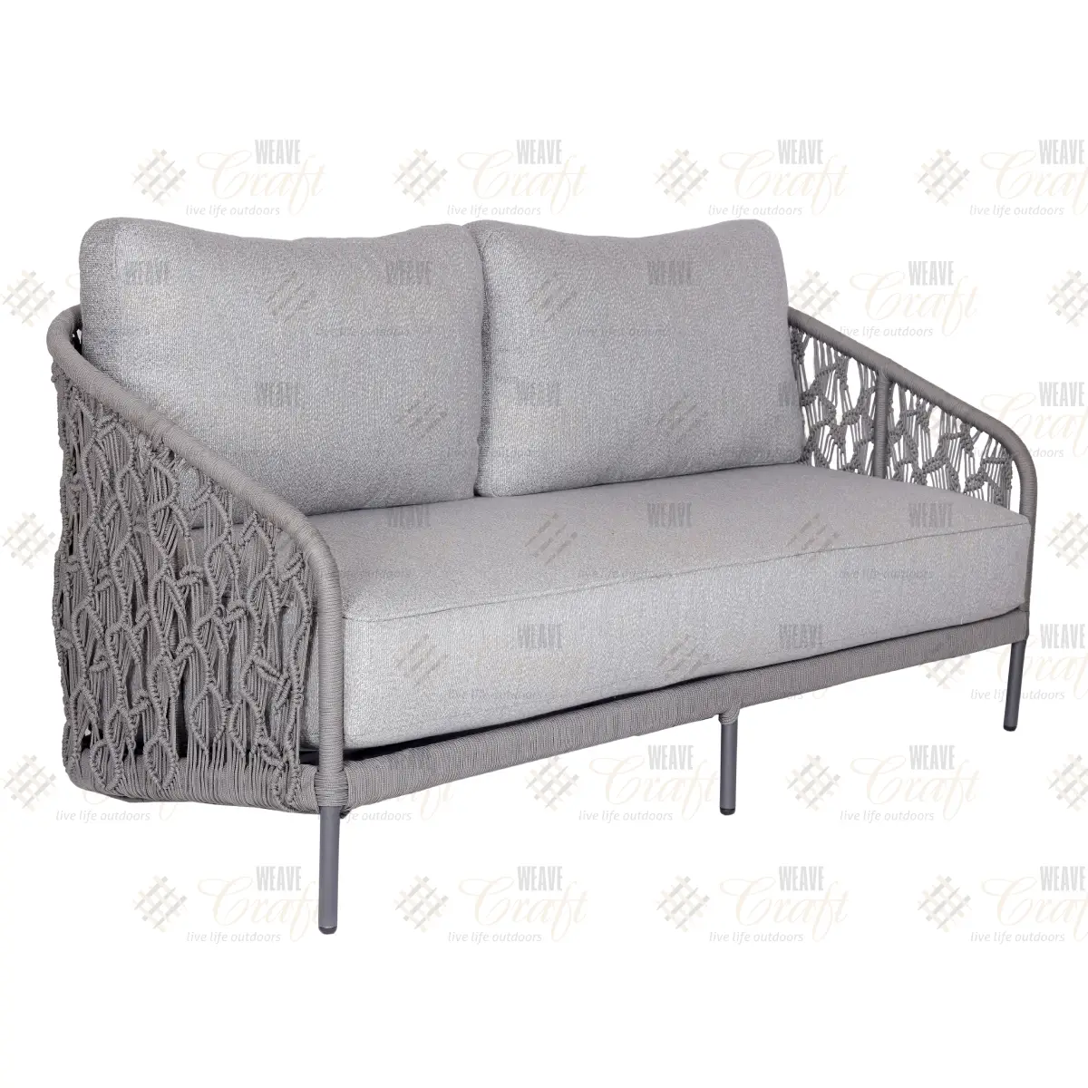 Designed for luxurious lounging, this Mapleton range living set combines comfort and craftsmanship. The two seater sofa features powder-coated aluminium frame, hand-woven with premium olefin rope—built to withstand outdoor elements with style.