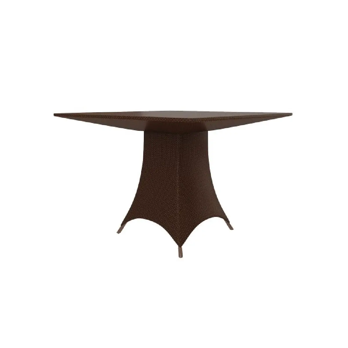 Crafted with a sturdy powder-coated aluminium frame and woven with synthetic wicker. The top can be woven in wicker with a 8mm thick toughend glass top or could be a 12mm HPL top. It’s available in square or round shape. A perfect blend of elegance and modern design for any outdoor setting.