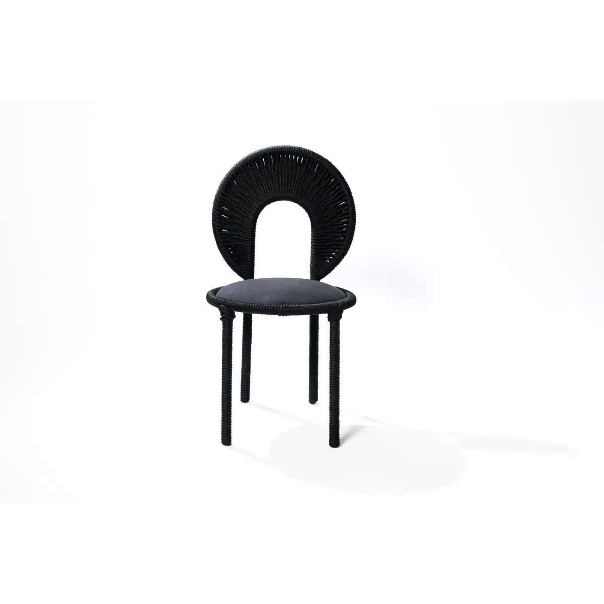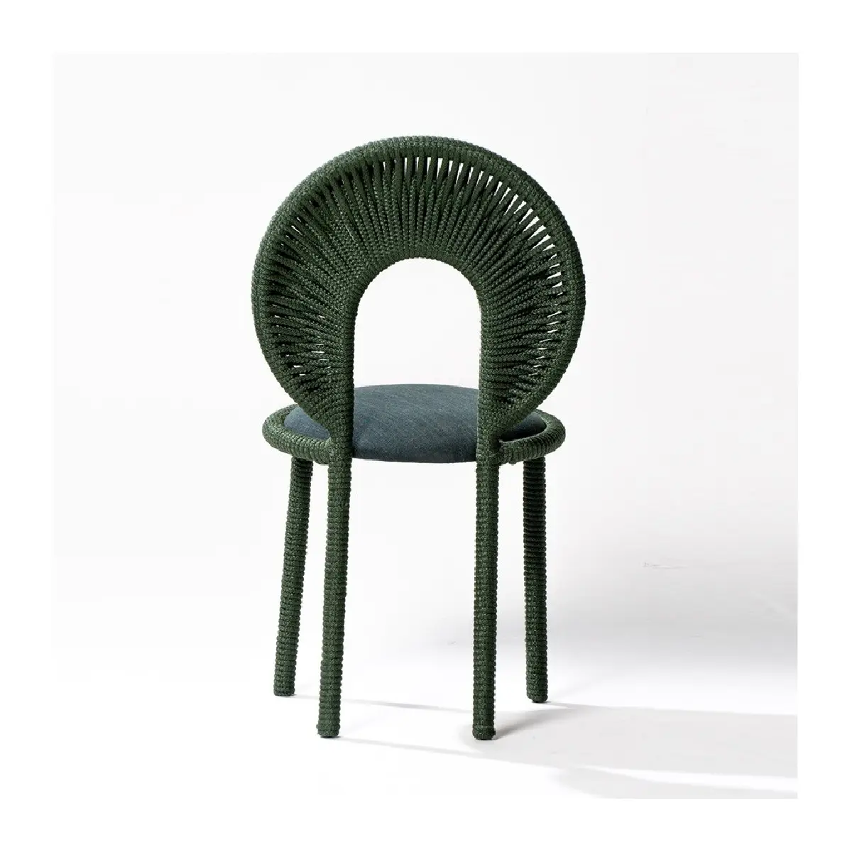 This elegant dining room chair is crafted with a powder-coated aluminium frame and hand-woven olefin rope. The plush cushion features 32-density filler-free PU foam, upholstered in premium 100% solution-dyed acrylic fabric from Agora (Spain) and Sunbrella (France). Removable, hand-washable covers ensure easy maintenance. Higher-density foam available on request.