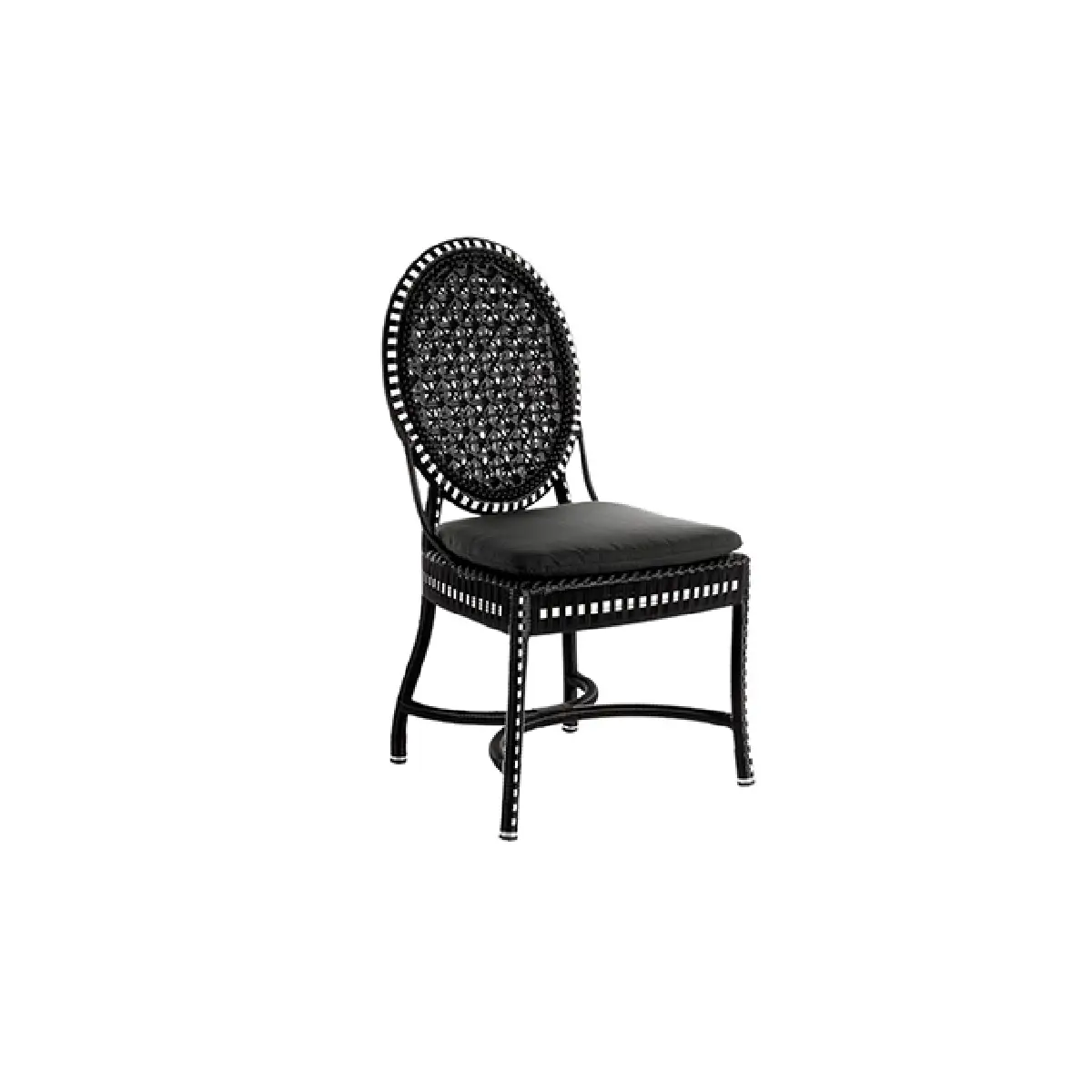This elegant dining room chair is Without Arms crafted with a powder-coated aluminium frame and hand-woven synthetic Wicker. The plush cushion features 32-density filler-free PU foam, upholstered in premium 100% solution-dyed acrylic fabric from Agora (Spain) and Sunbrella (France). Removable, hand-washable covers ensure easy maintenance. Higher-density foam available on request.