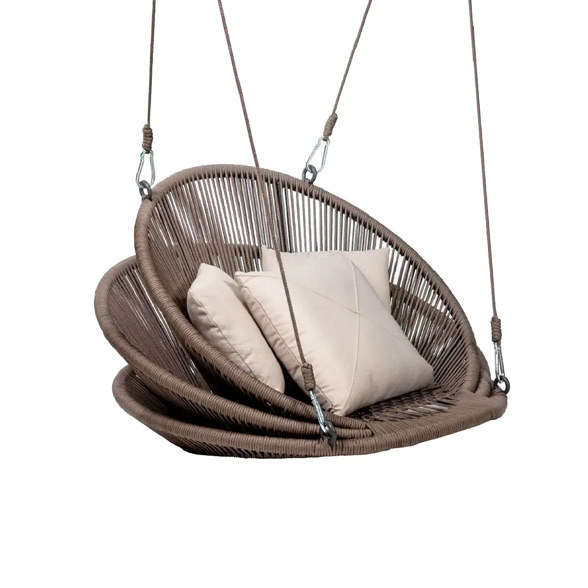 Elevate your outdoor ambience with the Orchid Swing, now available in a striking Olefin rope weave. Set on a robust powder-coated aluminium frame and finished with deep, weather-resistant cushions upholstered in premium solution-dyed fabric, this swing brings together breathable comfort, UV resistance, and contemporary aesthetics.
