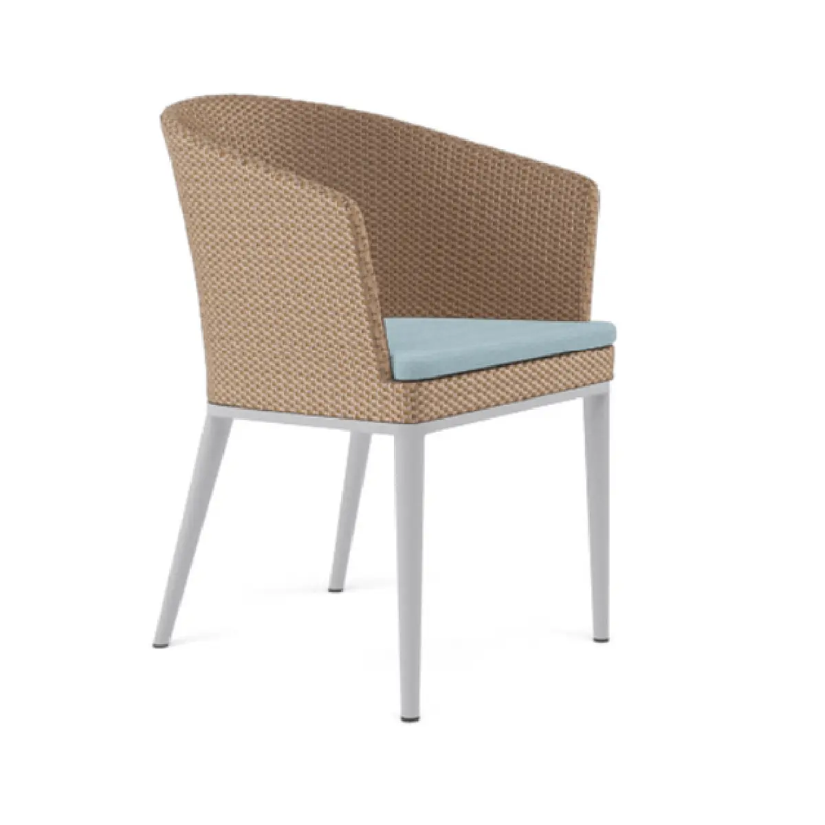 This elegant dining room chair is crafted with a powder-coated aluminium frame and hand-woven synthetic Wicker. The plush cushion features 32-density filler-free PU foam, upholstered in premium 100% solution-dyed acrylic fabric from Agora (Spain) and Sunbrella (France). Removable, hand-washable covers ensure easy maintenance. Higher-density foam available on request.