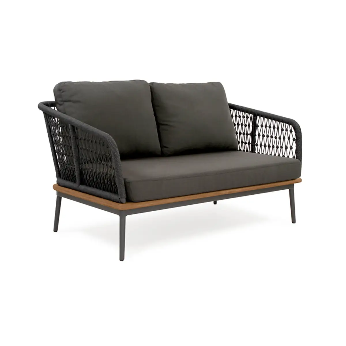 Designed for luxurious lounging, this Sommerset range living set combines comfort and craftsmanship. The two seater sofa features powder-coated aluminium frame, hand-woven with premium olefin rope—built to withstand outdoor elements with style.