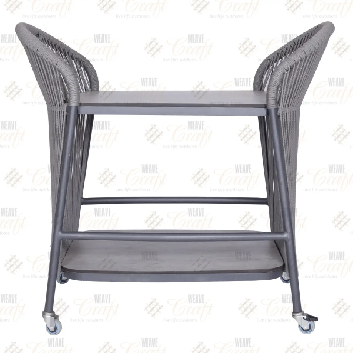 Elevate your outdoor entertaining with the Outdoor Trolley, a perfect blend of functionality and sophistication. Expertly crafted with a rust-proof aluminum frame, it is wrapped in premium olefin rope for a contemporary and stylish look.